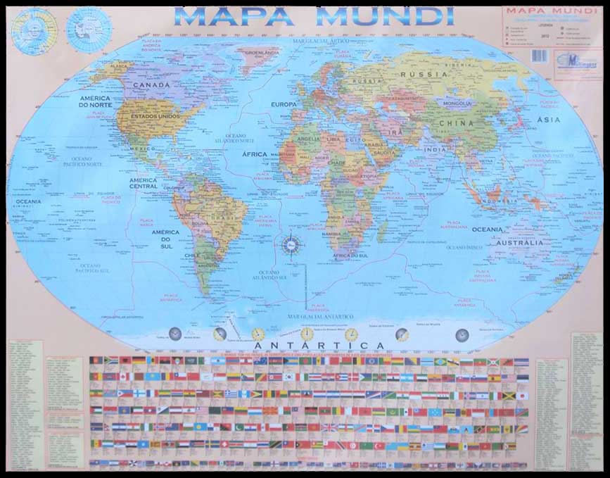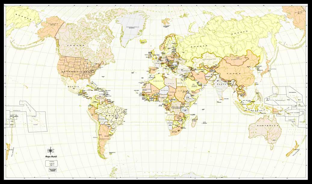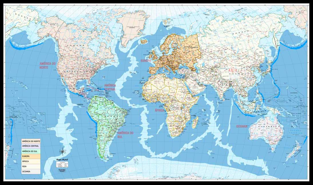 Garanta já o seu!Mapa do Mundi, cada país em cores diferentes, com ou sem rodovias, principais cidades e rios - com os principais portos e aeroportos.