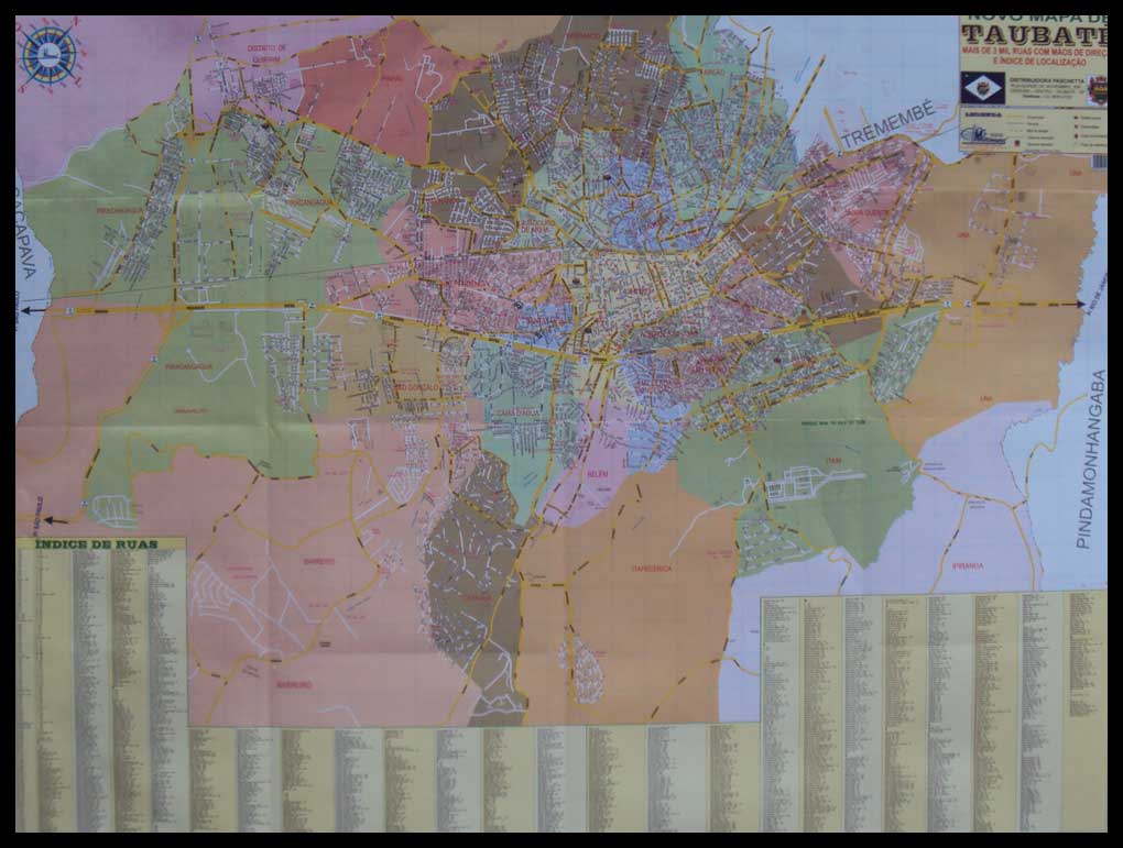 Abrangendo todos os Bairros de São Paulo em cores diferentes e os Municípios do ABCDRM, Guarulhos, Itaquaquecetuba, Ferraz de Vas., Poá, Suzano. Parte de Arujá, Osasco, Cotia, Taboão da Serra, Carapicuíba, Embu, Itapecerica da Serra. Parte de Barueri até Alphaville. Medida de 2,00x3,00 m.