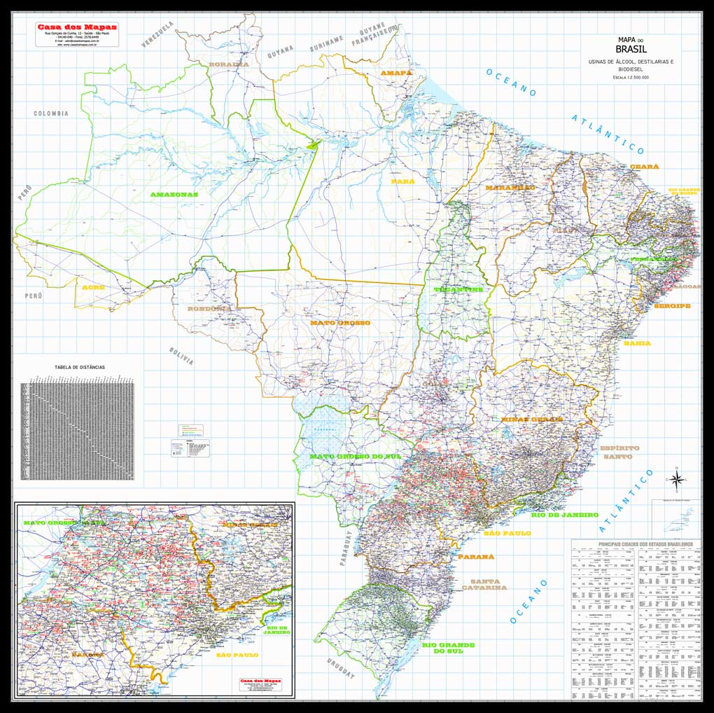 150-Brasil USINA, com todas as Usina de Alcool e Açucar e Destilados do Brasil, com os municipios do Brail, na medida de 1,80x1,80 m. na Escala de 1:2.500.00. |